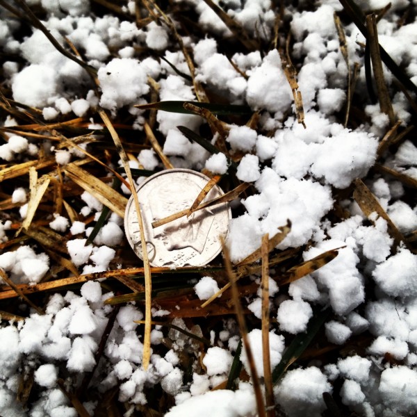 The sun heats the air and causes it to rise. Tiny snowflakes are caught in the updraft and bounce up and down in the atmosphere a few times, encountering super-cooled water droplets along the way. Those droplets stick to the snowflakes, gradually building up more mass until they can't escape the tug of gravity. They fall to Earth in little chunks that feel like frozen bits of styrofoam, a hybrid of snow and hail.