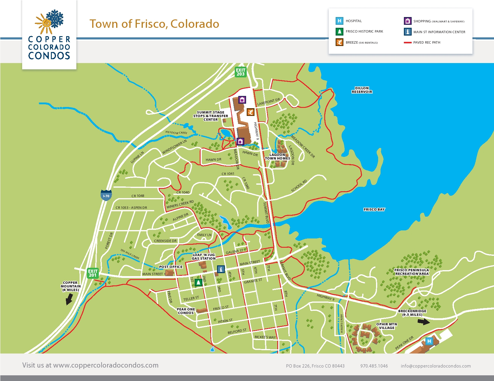 Copper Mountain and Frisco are over 9100 feet. The majority of visitors will have no problem with the altitude. However, if you are traveling from sea level, it’s wise to follow some high altitude guidelines in order to enjoy your vacation.